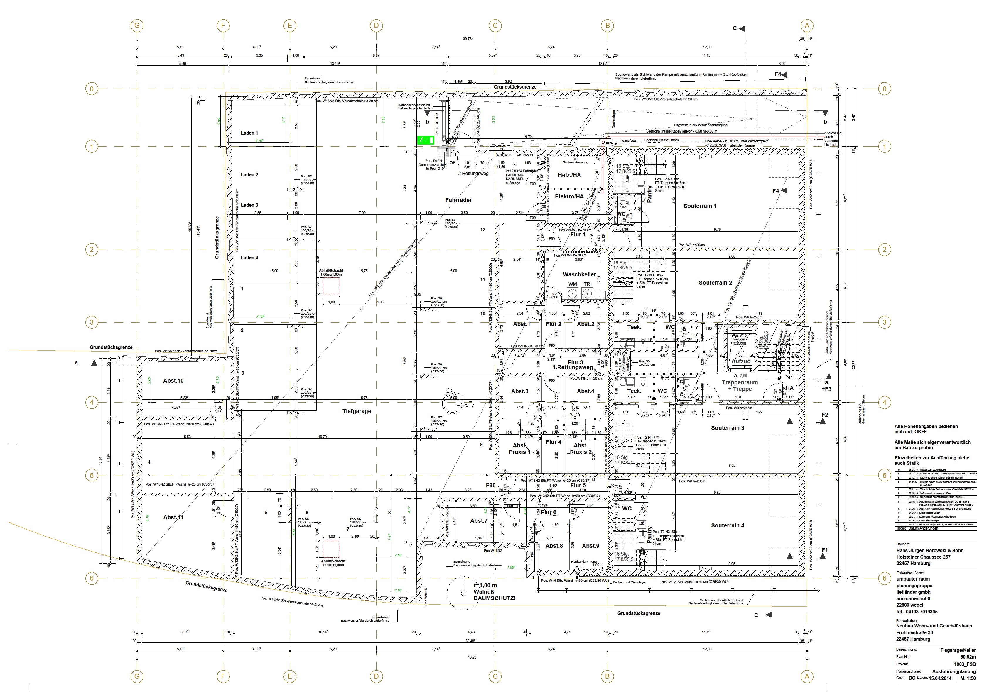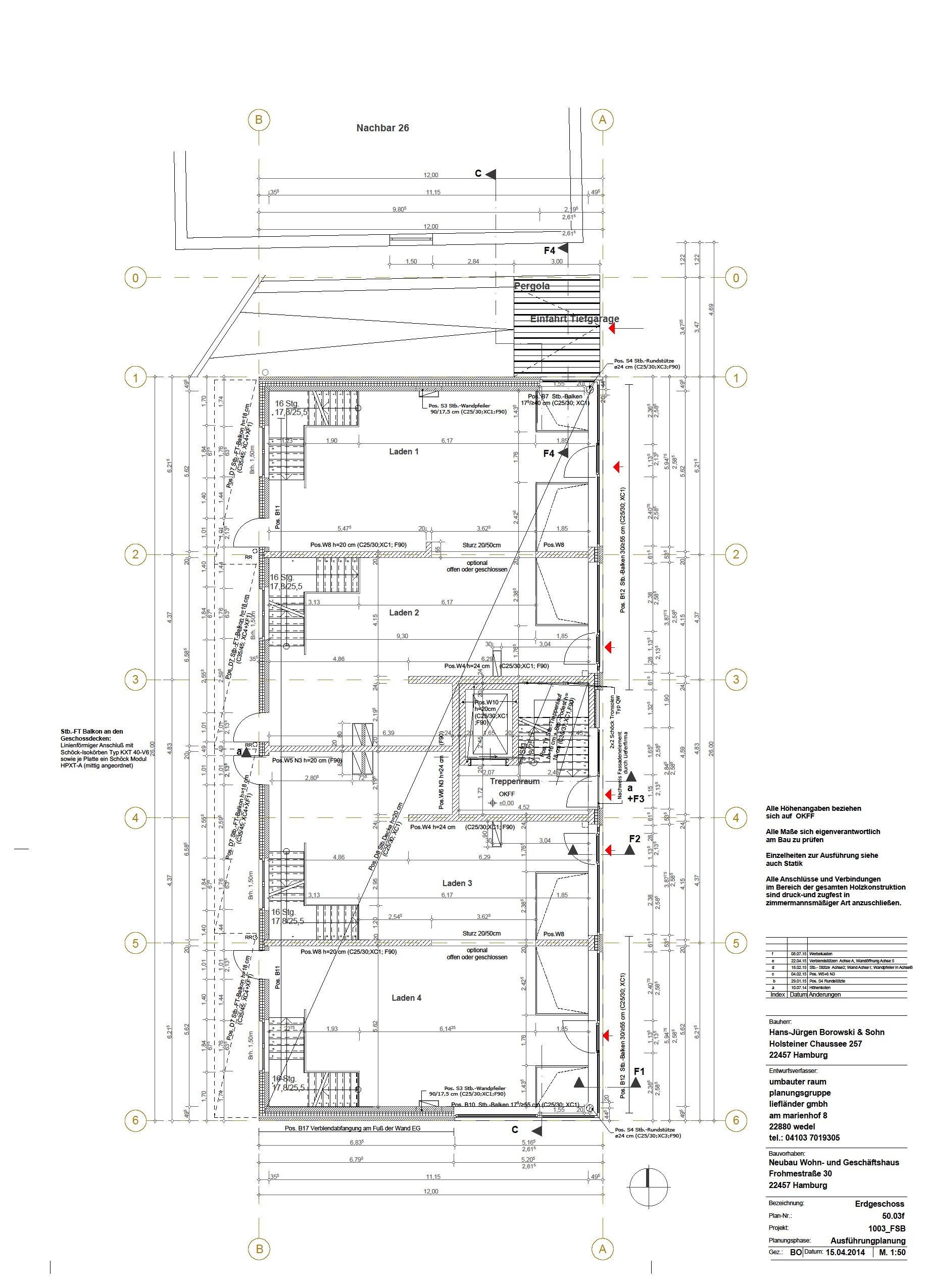 In einem modernen Wohn- und Geschäftshaus (Neubau) mit außergewöhnlichen Raumaufteilungen entstehen vier interessante Ladenlokale mit Flächen von 104 bis 109 m". Bei zusammenlegung der Flächen 1 und 2 zwei kann eine Fläche von 213 m² geschaffen werden.